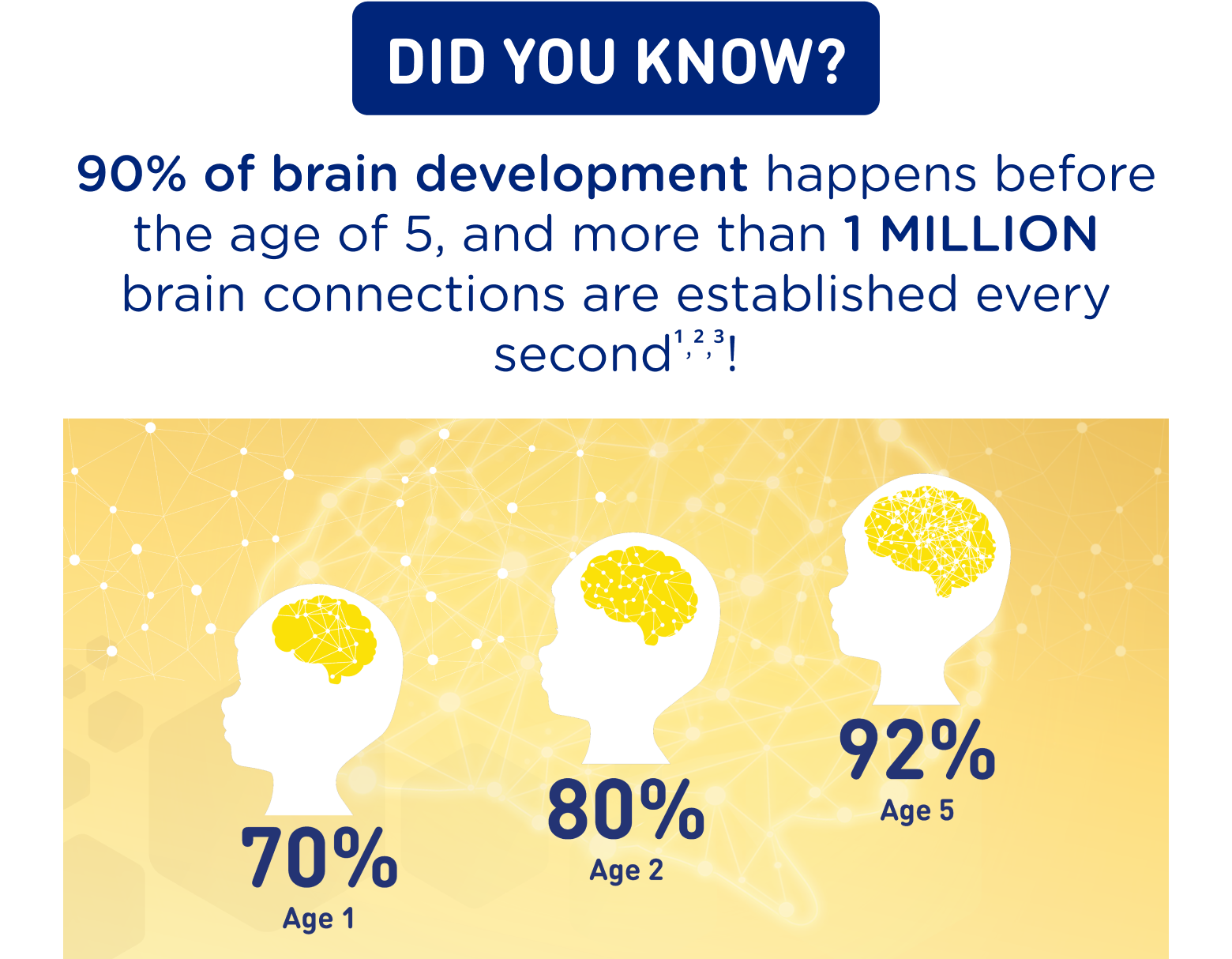 *Meet expert recommended daily DHA intake by 3 servings per day. The Joint FAO/WHO Expert Consultation on Fats and Fatty Acids in Human Nutrition recommends daily dietary DHA intake of 10-12mg/kg body weight for children 12-24 months or 100-150mg DHA+EPA for children 2-4 years old. Reference: FAO 2010. Fats and fatty acids in human nutrition. Report of an expert consultation. FAO Food and Nutrition Paper no. 91. FAO: Rome.